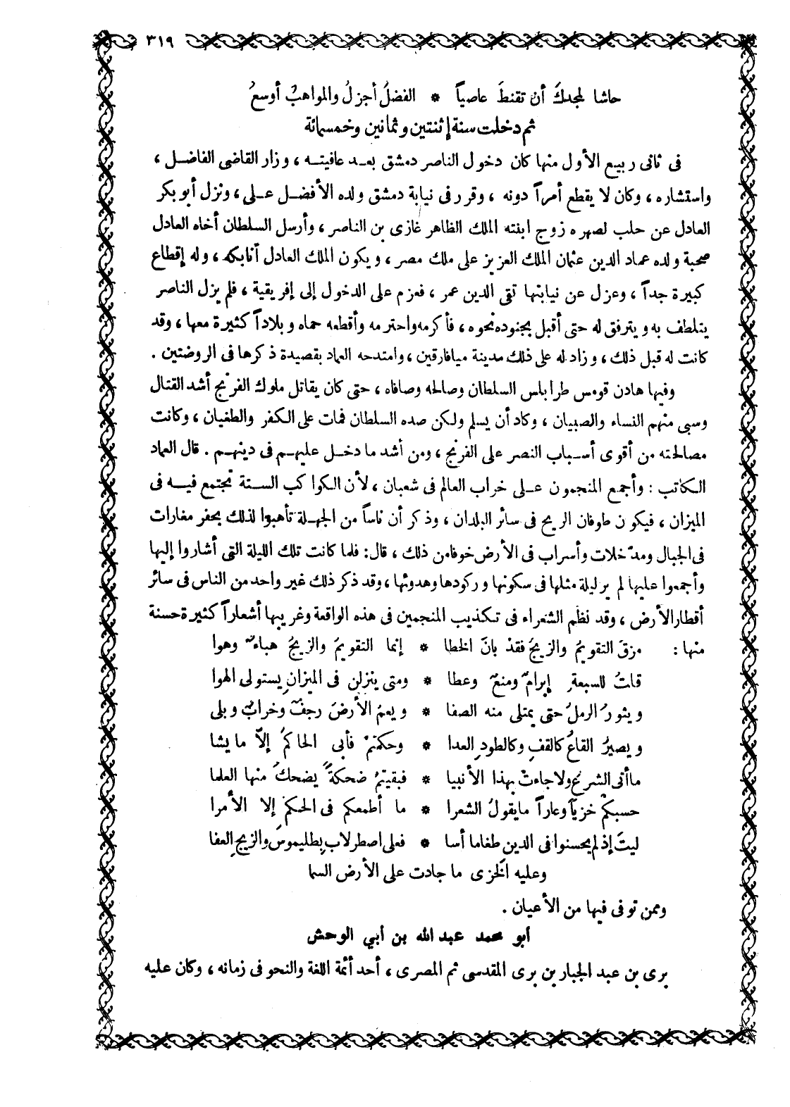 ثُمَّ دَخَلَتْ سنة اثنتين وثمانين وخمسمائة