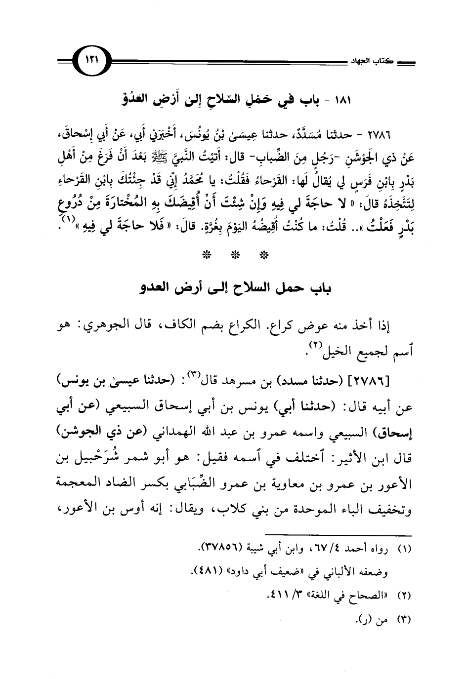 181 - باب في حَمْلِ السِّلاحِ إِلى أَرْضِ العَدُوِّ