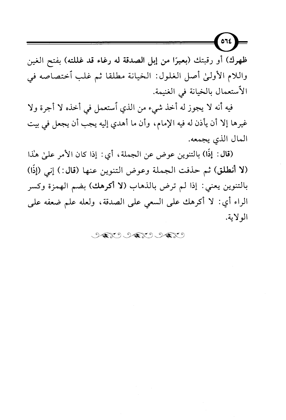 (قال: إذًا) بالتنوين عوض عن الجملة، أي: إذا كان الأمر على هذا (لا أنطلق) ثم حذفت الجملة وعوض التنوين عنها (قال: ) إني (إذًا) بالتنوين يعني: إذا لم ترض بالذهاب (لا أكرهك) بضم الهمزة وكسر الراء أي: لا أكرهك على السعي على الصدقة، ولعله علم ضعفه على الولاية.