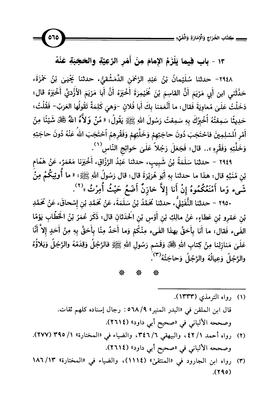 13 - باب فِيما يَلْزمُ الإِمامَ منْ أَمْرَ الرَّعِيَّةِ والحَجَبَةِ عَنْهُ