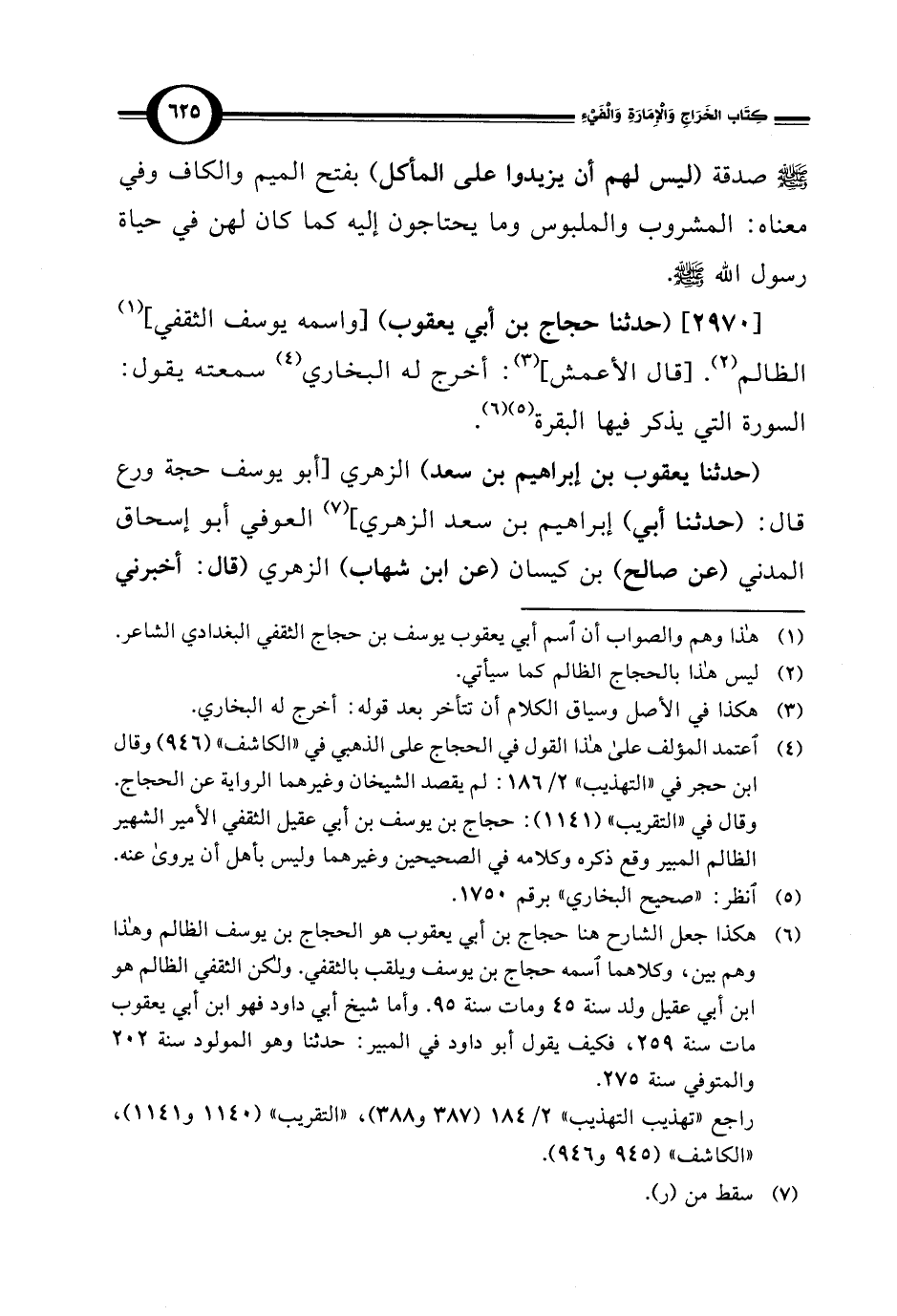 (¬6) هكذا جعل الشارح هنا حجاج بن أبي يعقوب هو الحجاج بن يوسف الظالم وهذا وهم بين، وكلاهما اسمه حجاج بن يوسف ويلقب بالثقفي. ولكن الثقفي الظالم هو ابن أبي عقيل ولد سنة 45 ومات سنة 95. وأما شيخ أبي داود فهو ابن أبي يعقوب مات سنة 259، فكيف يقول أبو داود في المبير: حدثنا وهو المولود سنة 202 والمتوفي سنة 275.