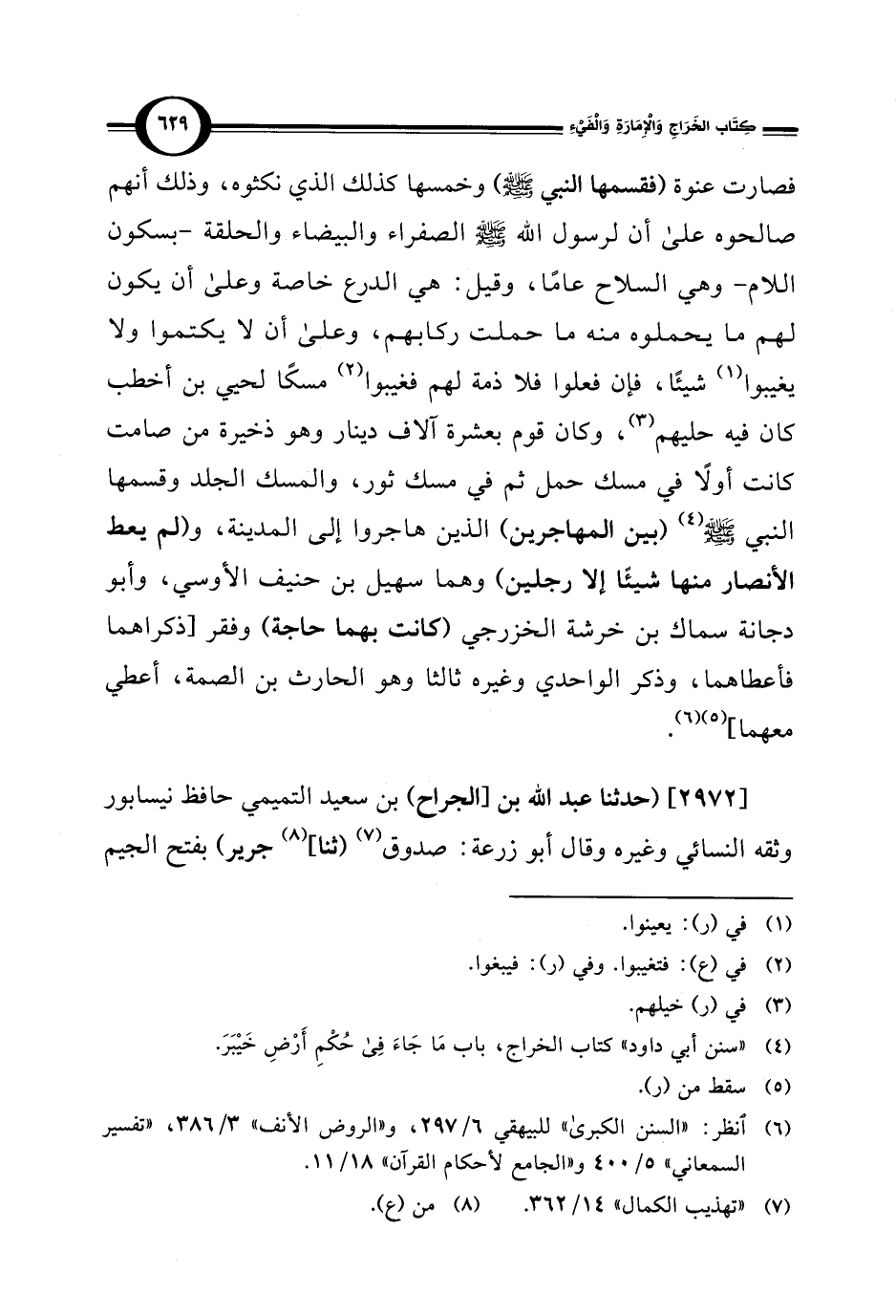 (¬6) انظر: "السنن الكبرى" للبيهقي 6/ 297، و"الروض الأنف" 3/ 386، "تفسير السمعاني" 5/ 400 و"الجامع لأحكام القرآن" 18/ 11.
