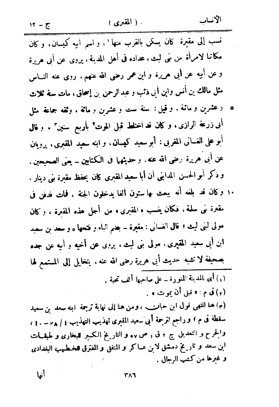 [3] هنا انتهى قول ابن حبان، ومن هنا إلى نهاية ترجمة ابنه سعد بن سعيد سقطة في م، وراجع لترجمة أبى سعيد المقبري تهذيب التهذيب 4/ 38- 40، والجرح والتعديل ج 2 ق 1 ص 57 والتاريخ الكبير للبخاريّ وطبقات ابن سعد وتاريخ دمشق لابن عساكر والمتفق والمفترق للخطيب البغدادي وغيرها من كتب الرجال.