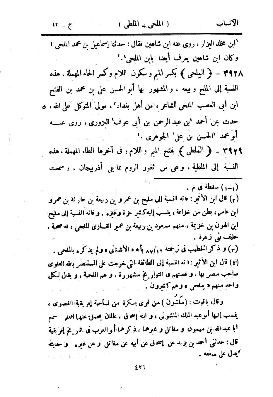 [4] قال ابن الأثير: فاته النسبة إلى الطائفة التي خرجت على المستنصر باللَّه العلويّ صاحب مصر بها، وقصتهم في التواريخ مشهورة، وهم الملحية، ويقال لكل واحد منهم «ملحى» وهم كثيرون.