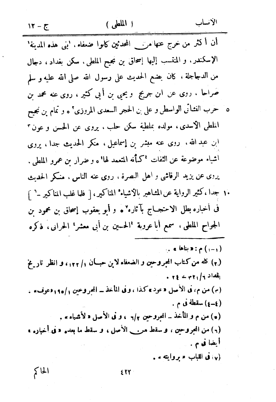 [2] كله من كتاب المجروحين والضعفاء لابن حبان 1/ 122، وانظر تاريخ بغداد 6/ 321- 24.