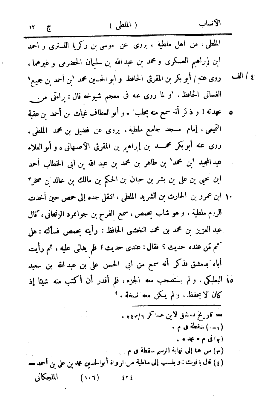 [4] قال ياقوت: وينسب إلى ملطية من الرواة أبو الحسين محمد بن على بن أحمد