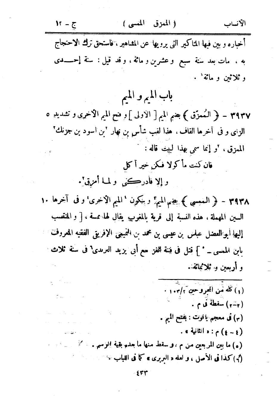 بضم الميم [3] وسكون [4] الميم الأخرى [4] وفي آخرها السين المهملة، هذه النسبة إلى قرية بالمغرب يقال لها ممسة، [والمنتسب إليها أبو الفضل عباس بن عيسى بن محمد بن التميمي الإفريقي الفقيه المعروف بابن الممسى-[5]] قتل في فتنة الغز مع أبى يزيد البريدي [6] في سنة ثلاث وأربعين وثلاثمائة.