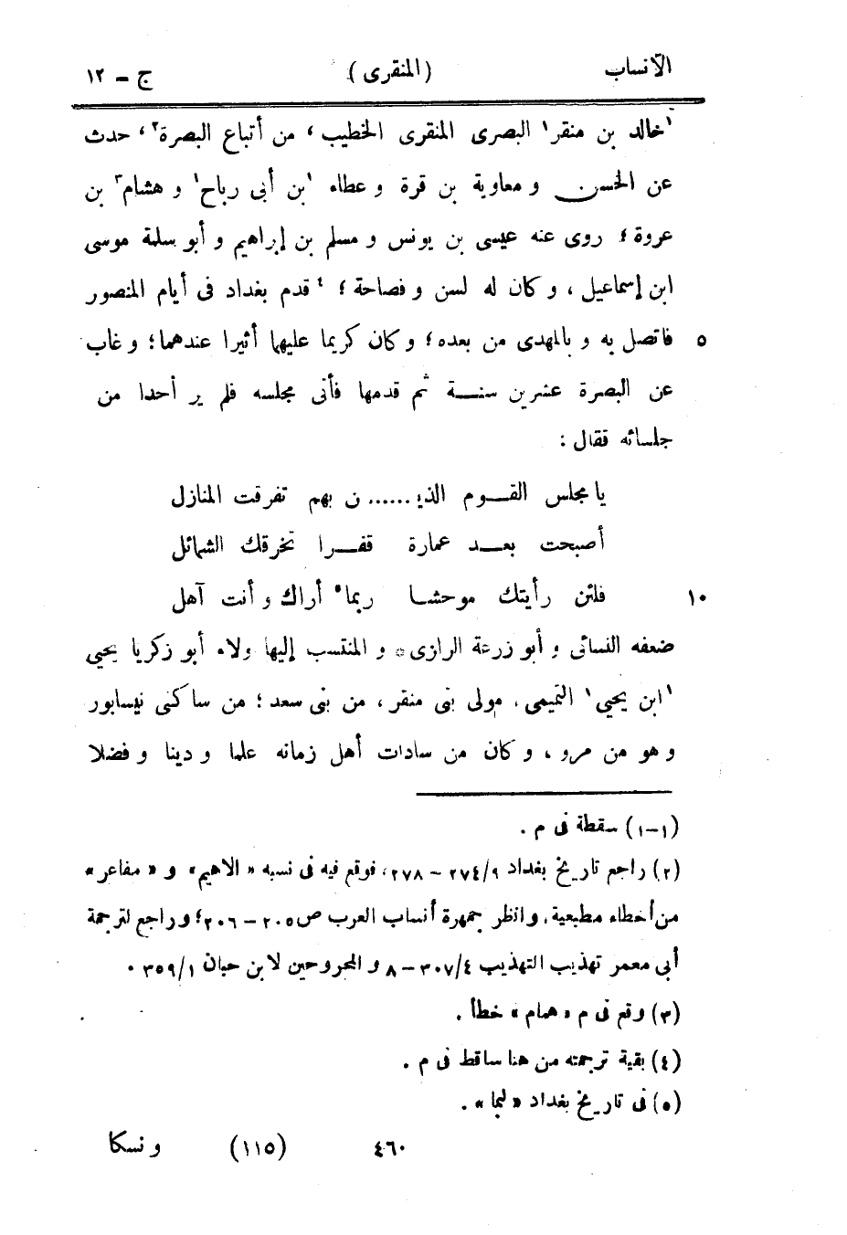 [2] راجع تاريخ بغداد 9/ 274- 278، فوقع فيه في نسبه «الأهيم» و «مفاعر» من أخطاء مطبعية، وانظر جمهرة أنساب العرب ص 205- 206، وراجع لترجمة أبى معمر تهذيب التهذيب 4/ 307- 8 والمجروحين لابن حبان 1/ 359.