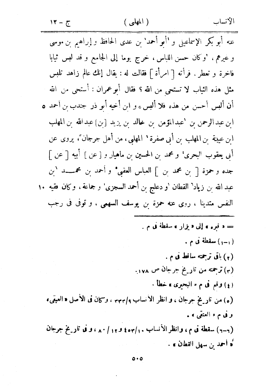 [6- 6] سقطة في م، وانظر الأنساب 10/ 453 و 12/ 80، وفي تاريخ جرجان «أحمد بن سهل القطان» .