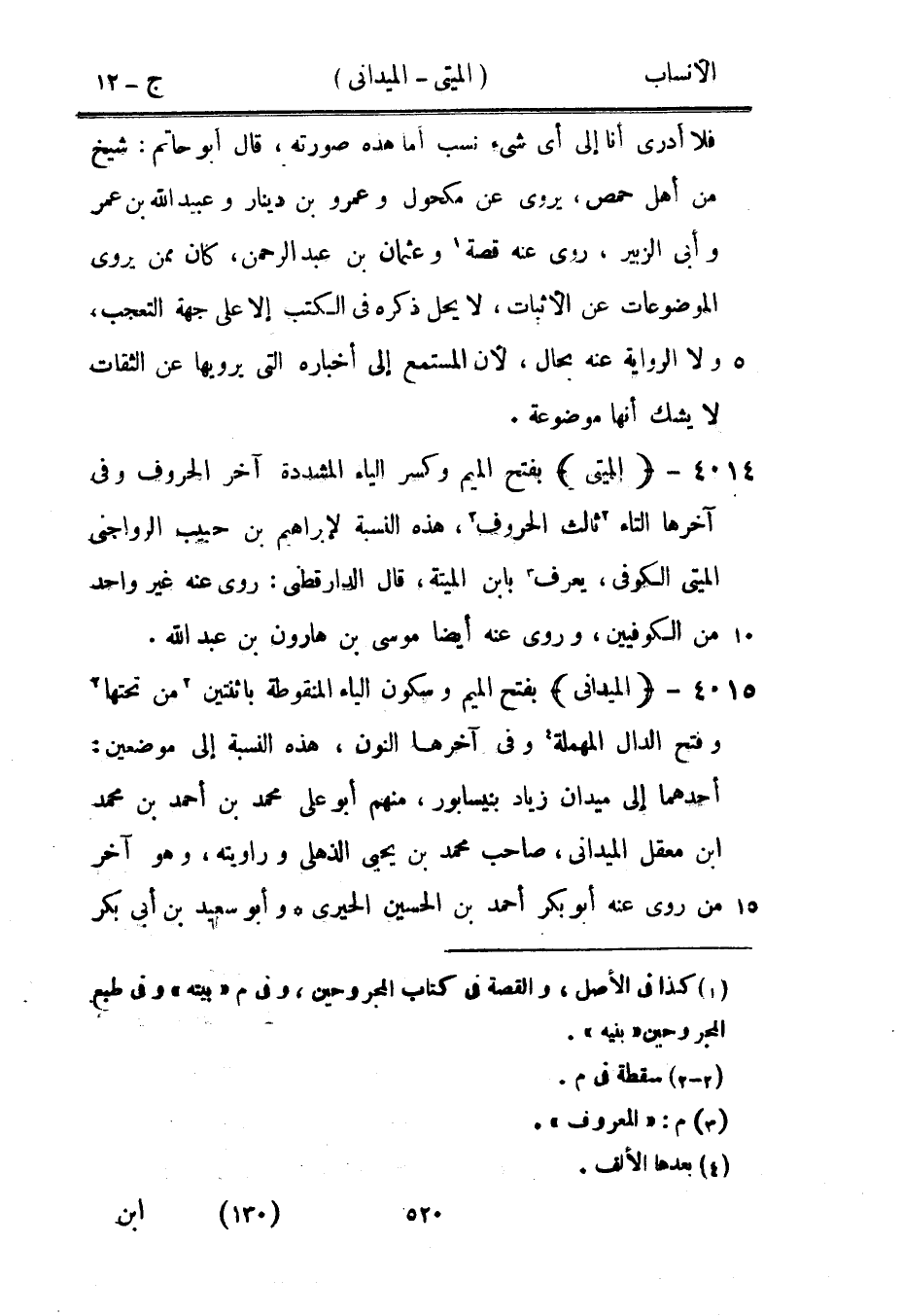 بفتح الميم وكسر الياء المشددة آخر الحروف وفي آخرها التاء [2] ثالث الحروف [2] ، هذه النسبة لإبراهيم بن حبيب الرواجني الميتى الكوفي، يعرف [3] بابن الميتة، قال الدار قطنى: روى عنه غير واحد من الكوفيين، وروى عنه أيضا موسى بن هارون بن عبد الله.