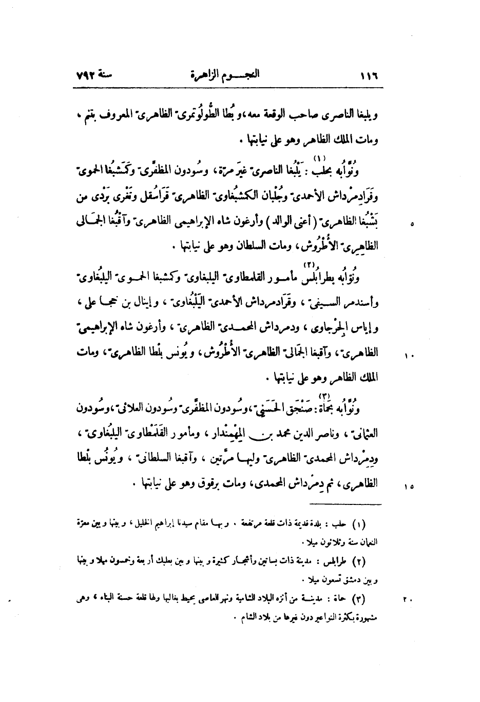 ونوّابه بحماة «3» : صنجق الحسنىّ، وسودون المظفّرىّ وسودون العلائىّ، وسودون العثمانىّ، وناصر الدين محمد بن المهمندار، ومأمور القلمطاوىّ اليلبغاوىّ، ودمرداش المحمدىّ الظاهرىّ وليها مرّتين، وآقبغا السلطانىّ، ويونس بلطا الظاهرى، ثم دمرداش المحمدى، ومات برقوق وهو على نيابتها.