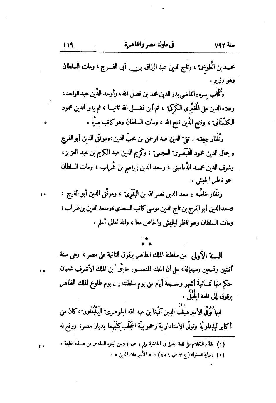 السنة الأولى من سلطنة الملك الظاهر برقوق الثانية على مصر، وهى سنة اثنتين وتسعين وسبعمائة، على أن الملك المنصور حاجّى بن الملك الأشرف شعبان حكم منها ثمانية أشهر وسبعة أيام من يوم سلطنته إلى يوم طلوع الملك الظاهر برقوق إلى قلعة الجبل «1» .