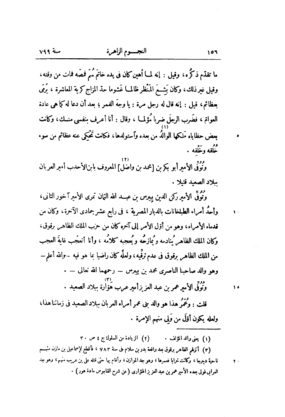 وتوفّى الأمير عمر بن عبد العزيز أمير عرب هوّارة «3» ببلاد الصعيد.
