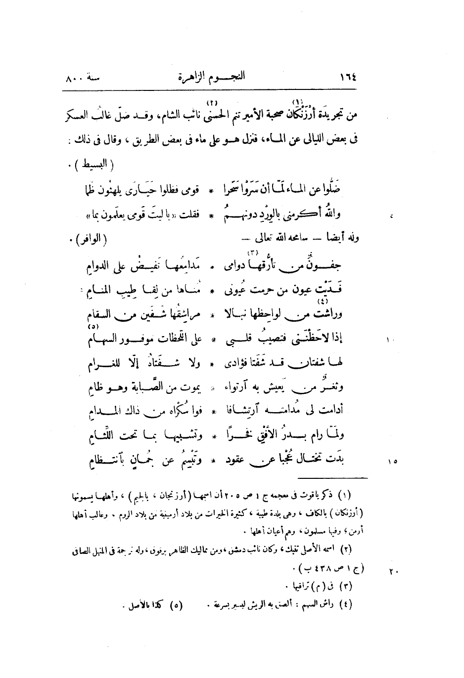 من تجريدة أرزنكان «1» صحبة الأمير تنم الحسنى «2» نائب الشام، وقد ضلّ غالب العسكر فى بعض الليالى عن الماء، فنزل هو على ماء فى بعض الطريق، وقال فى ذلك: