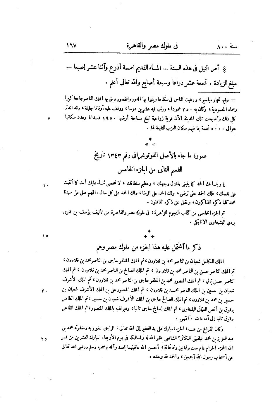 أمر النيل فى هذه السنة- الماء القديم خمسة أذرع واثنا عشر إصبعا- مبلغ الزيادة. تسعة عشر ذراعا وسبعة أصابع والله تعالى أعلم.