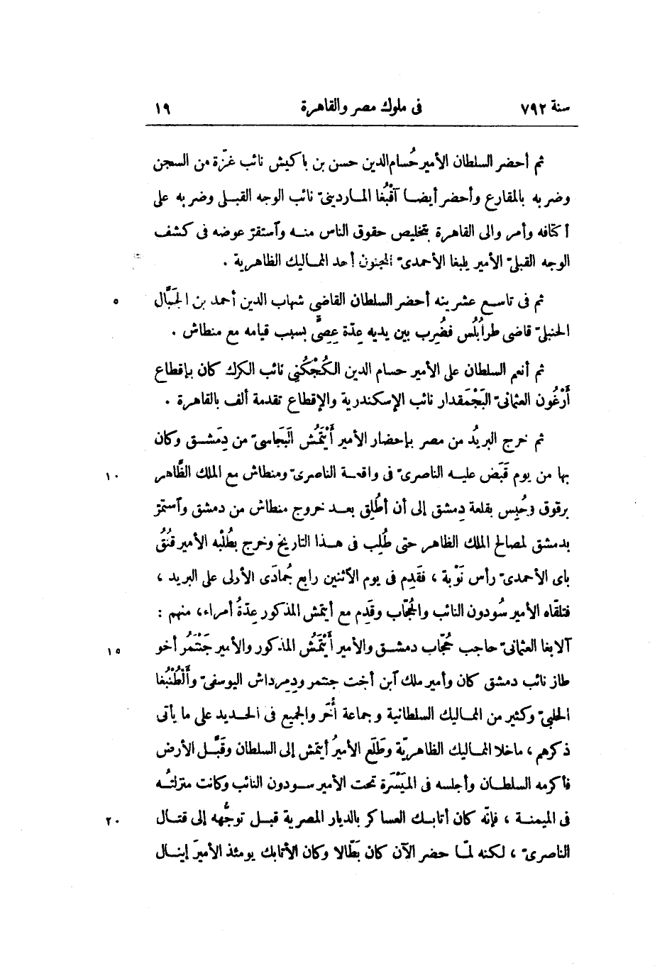 ثم أحضر السلطان الأمير حسام الدين حسن بن باكيش نائب غزّة من السجن وضربه بالمقارع وأحضر أيضا آقبغا الماردينىّ نائب الوجه القبلى وضربه على أكتافه وأمر والى القاهرة بتخليص حقوق الناس منه واستقرّ عوضه فى كشف الوجه القبلىّ الأمير يلبغا الأحمدىّ المجنون أحد المماليك الظاهرية.