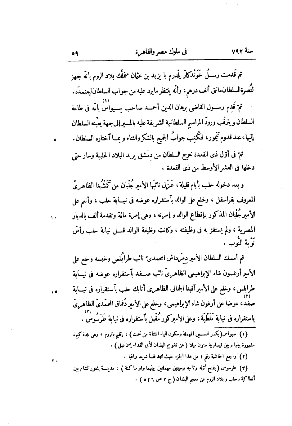 ثمّ فى أوّل ذى القعدة خرج السلطان من دمشق يريد البلاد الحلبية وسار حتى دخلها فى العشر الأوسط من ذى القعدة.