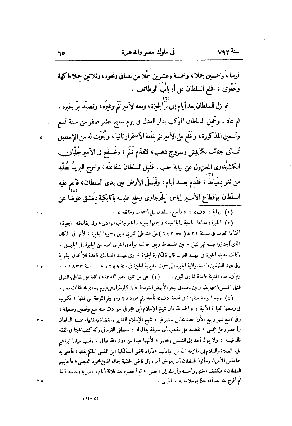 ثم نزل السلطان بعد أيام إلى برّ «2» الجيزة، ومعه الأمير تنم وغيره، وتصيّد ببرّ الجيزة.