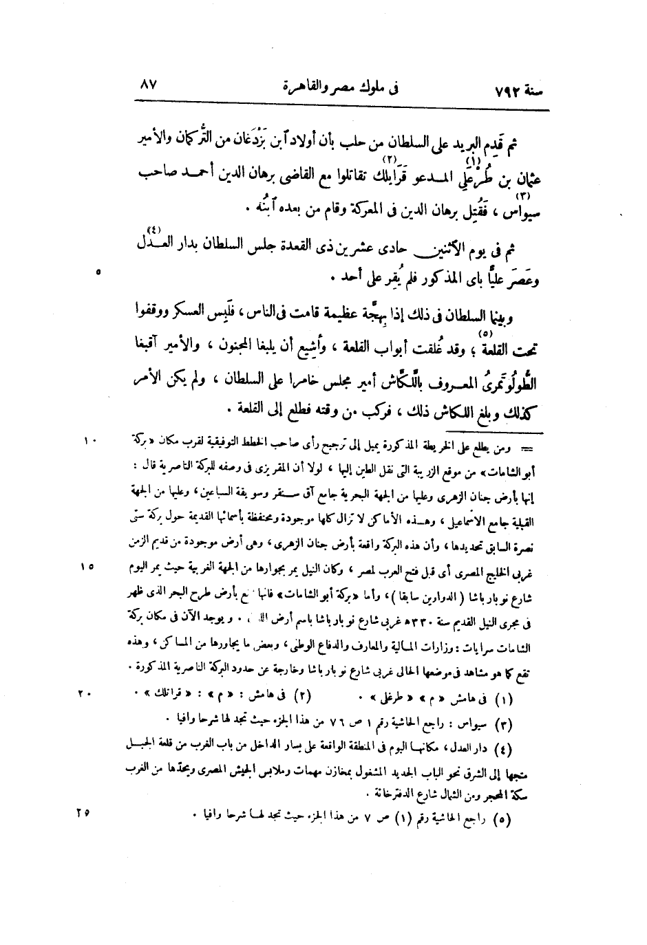 ثم قدم البريد على السلطان من حلب بأن أولاد ابن بزدغان من التّركمان والأمير عثمان بن طر على «1» المدعو قرايلك «2» تقاتلوا مع القاضى برهان الدين أحمد صاحب سيواس «3» ، فقتل برهان الدين فى المعركة وقام من بعده ابنه.