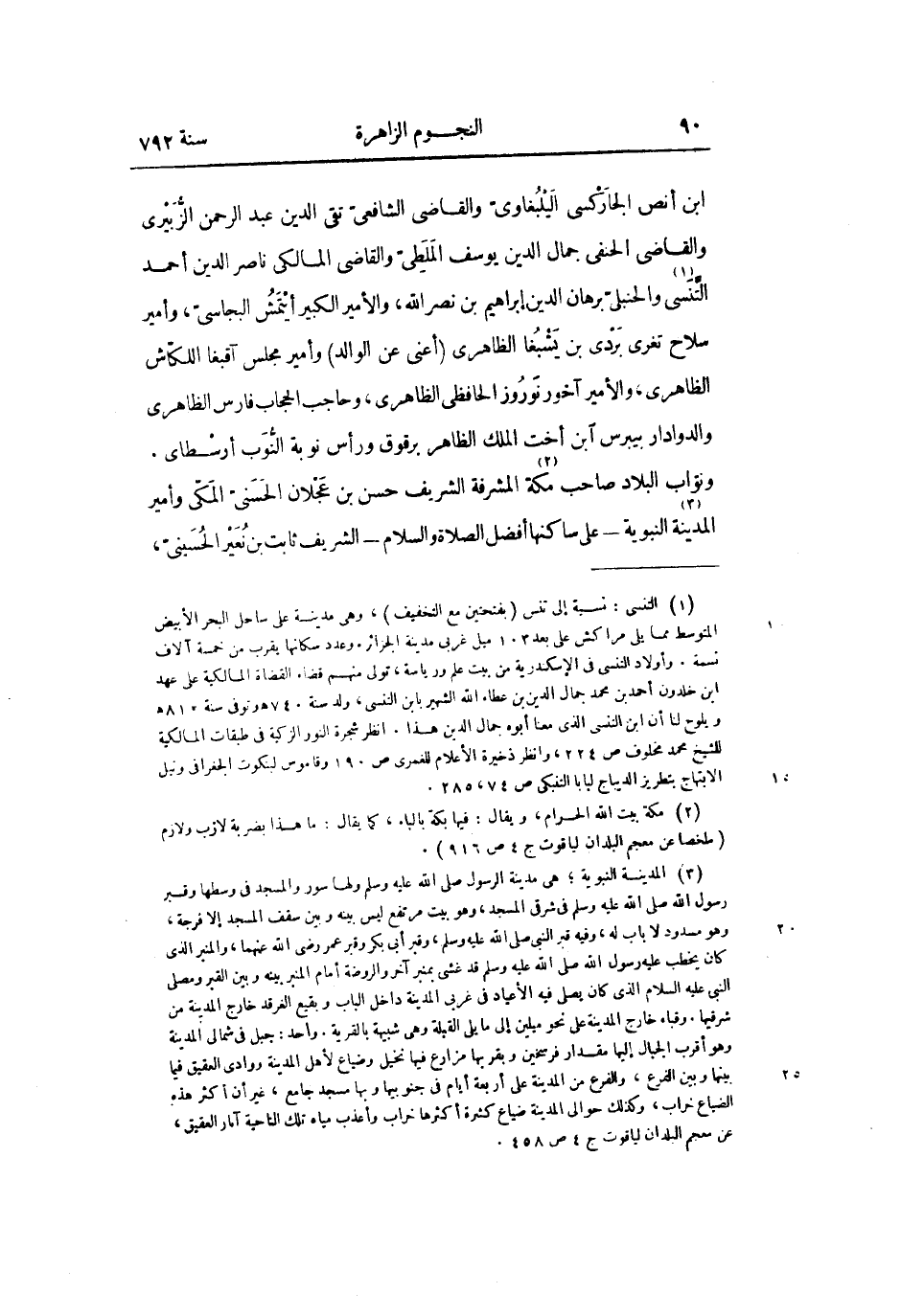 ونوّاب البلاد صاحب مكة «2» المشرفة الشريف حسن بن عجلان الحسنىّ المكّى وأمير المدينة «3» النبوية- على ساكنها أفضل الصلاة والسلام- الشريف ثابت بن نعير الحسينىّ،