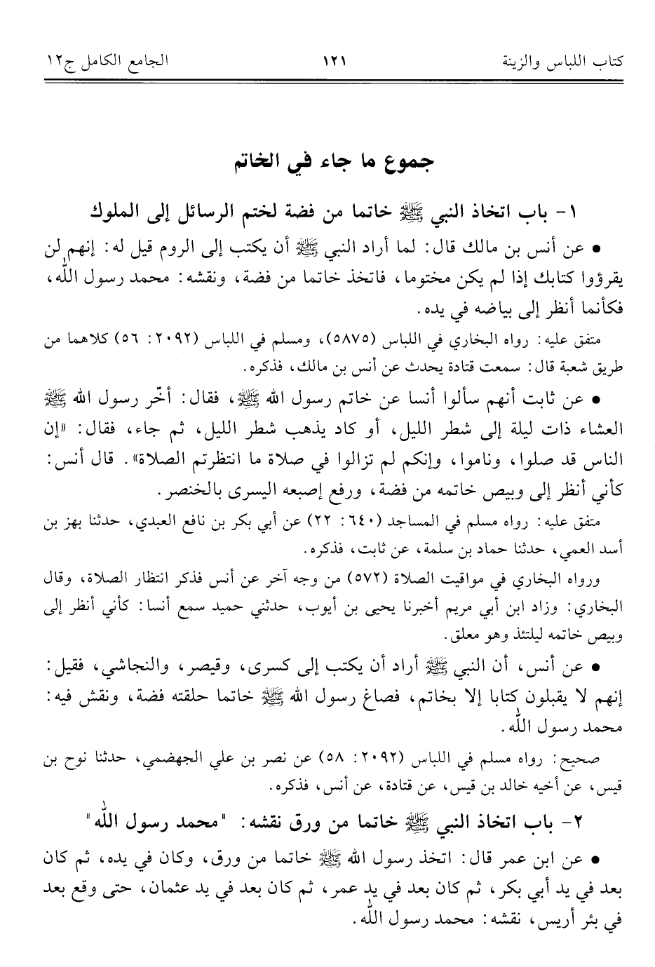 كتاب الجامع الكامل في الحديث الصحيح الشامل المرتب على أبواب الفقه (اسم الجزء: 12)