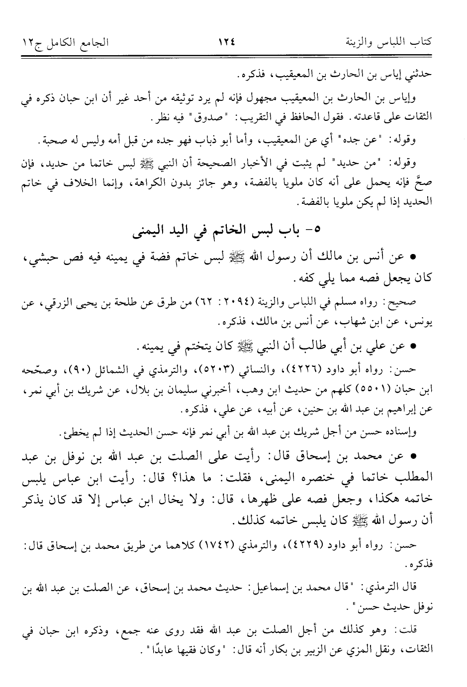 كتاب الجامع الكامل في الحديث الصحيح الشامل المرتب على أبواب الفقه (اسم الجزء: 12)