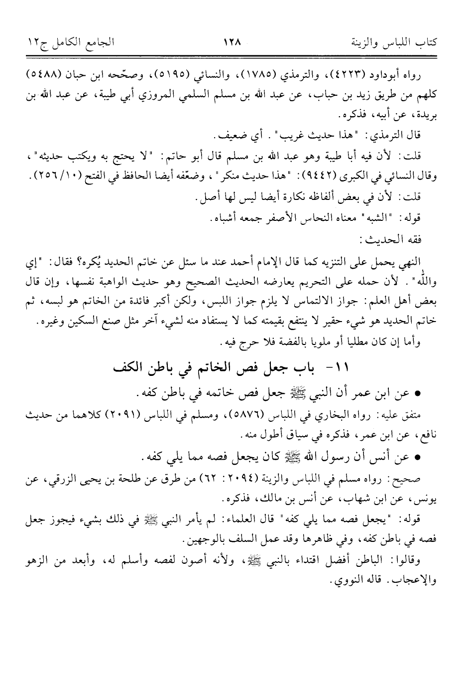 كتاب الجامع الكامل في الحديث الصحيح الشامل المرتب على أبواب الفقه (اسم الجزء: 12)