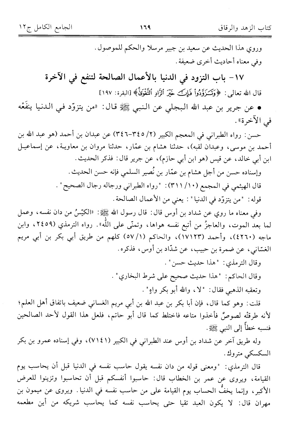 ١٧ - باب التزود في الدنيا بالأعمال الصالحة لتنفع في الآخرة