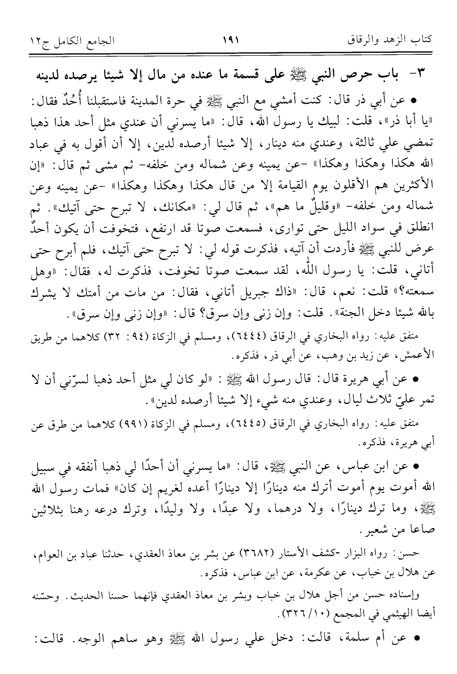 كتاب الجامع الكامل في الحديث الصحيح الشامل المرتب على أبواب الفقه (اسم الجزء: 12)