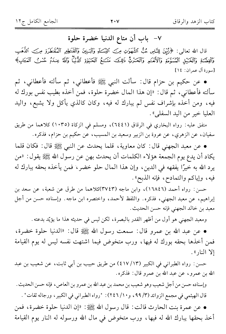 ٧ - باب أن متاع الدنيا خضرة حلوة