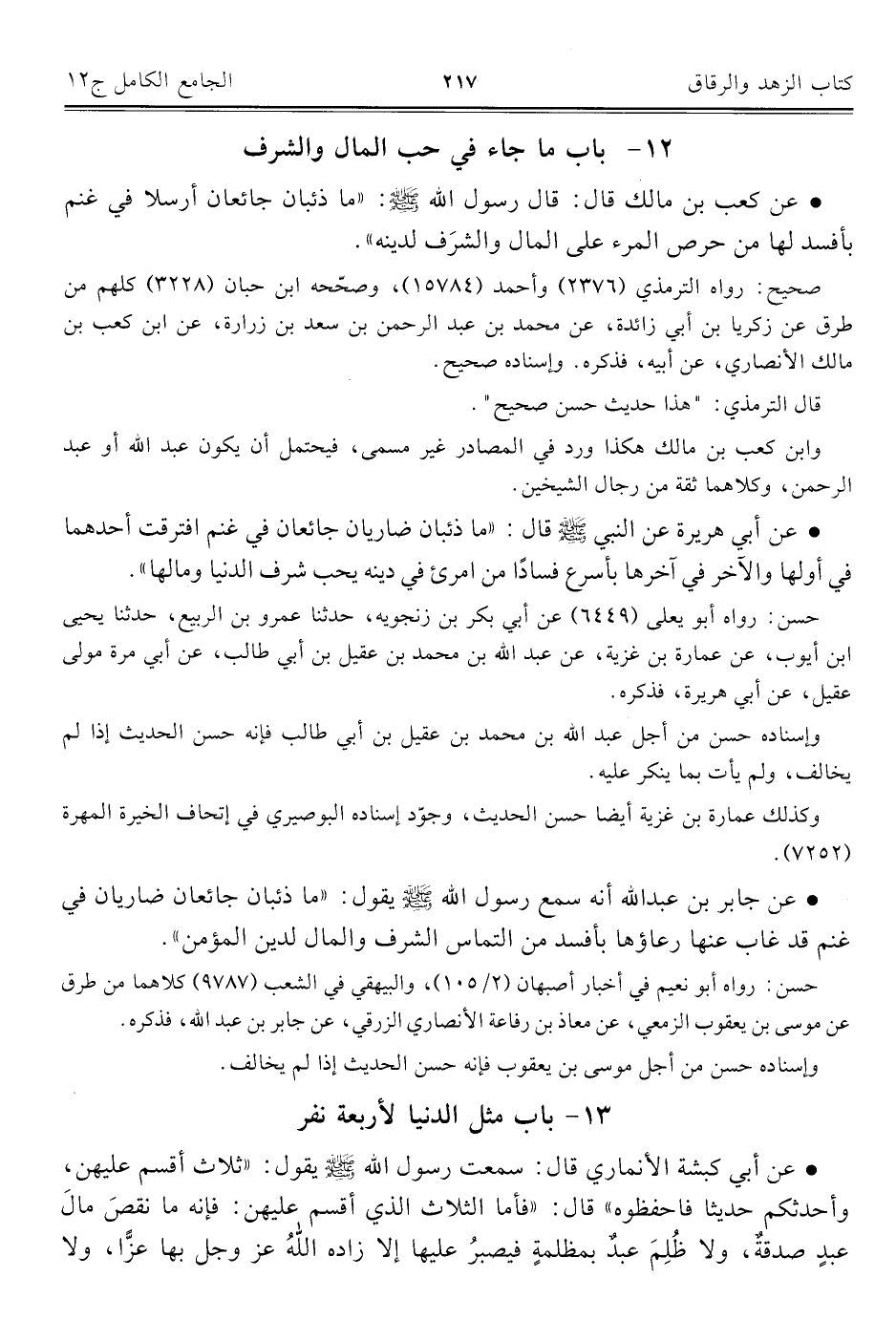 ١٢ - باب ما جاء في حب المال والشرف