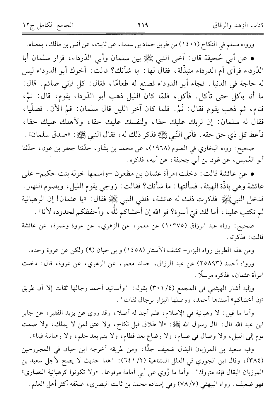 كتاب الجامع الكامل في الحديث الصحيح الشامل المرتب على أبواب الفقه (اسم الجزء: 12)