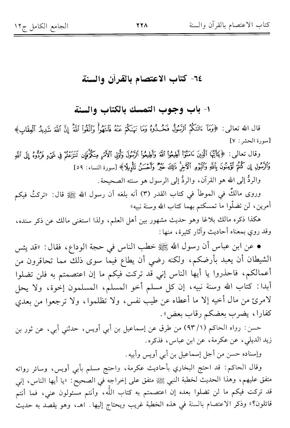 ٦٤ - كتاب الاعتصام بالقرآن والسنة