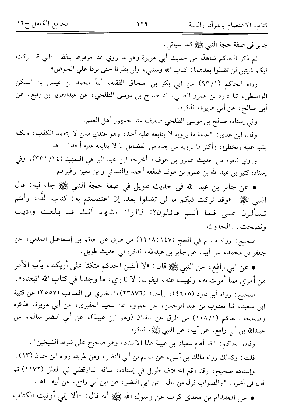 كتاب الجامع الكامل في الحديث الصحيح الشامل المرتب على أبواب الفقه (اسم الجزء: 12)