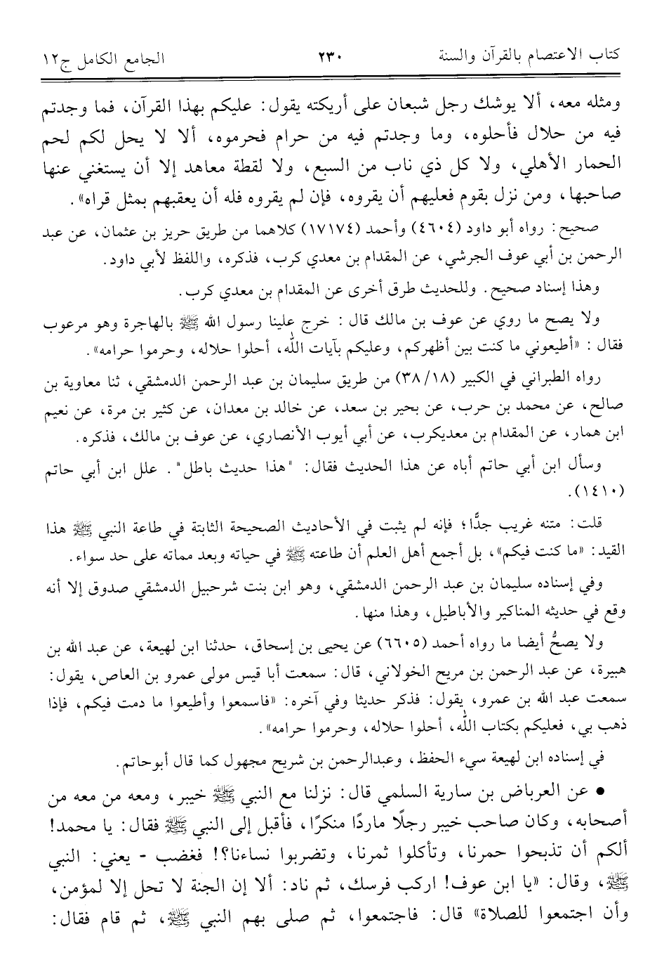 كتاب الجامع الكامل في الحديث الصحيح الشامل المرتب على أبواب الفقه (اسم الجزء: 12)