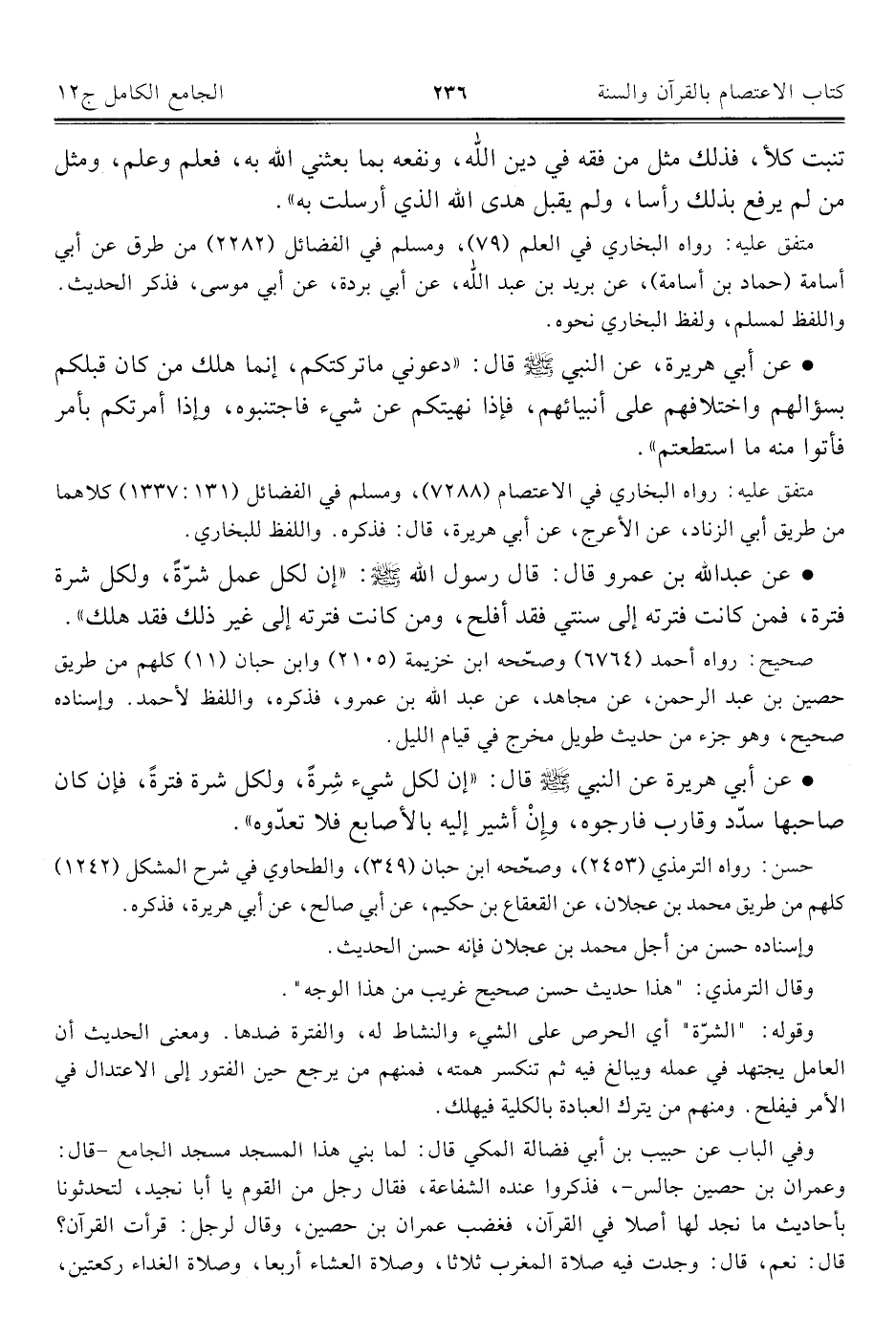 كتاب الجامع الكامل في الحديث الصحيح الشامل المرتب على أبواب الفقه (اسم الجزء: 12)