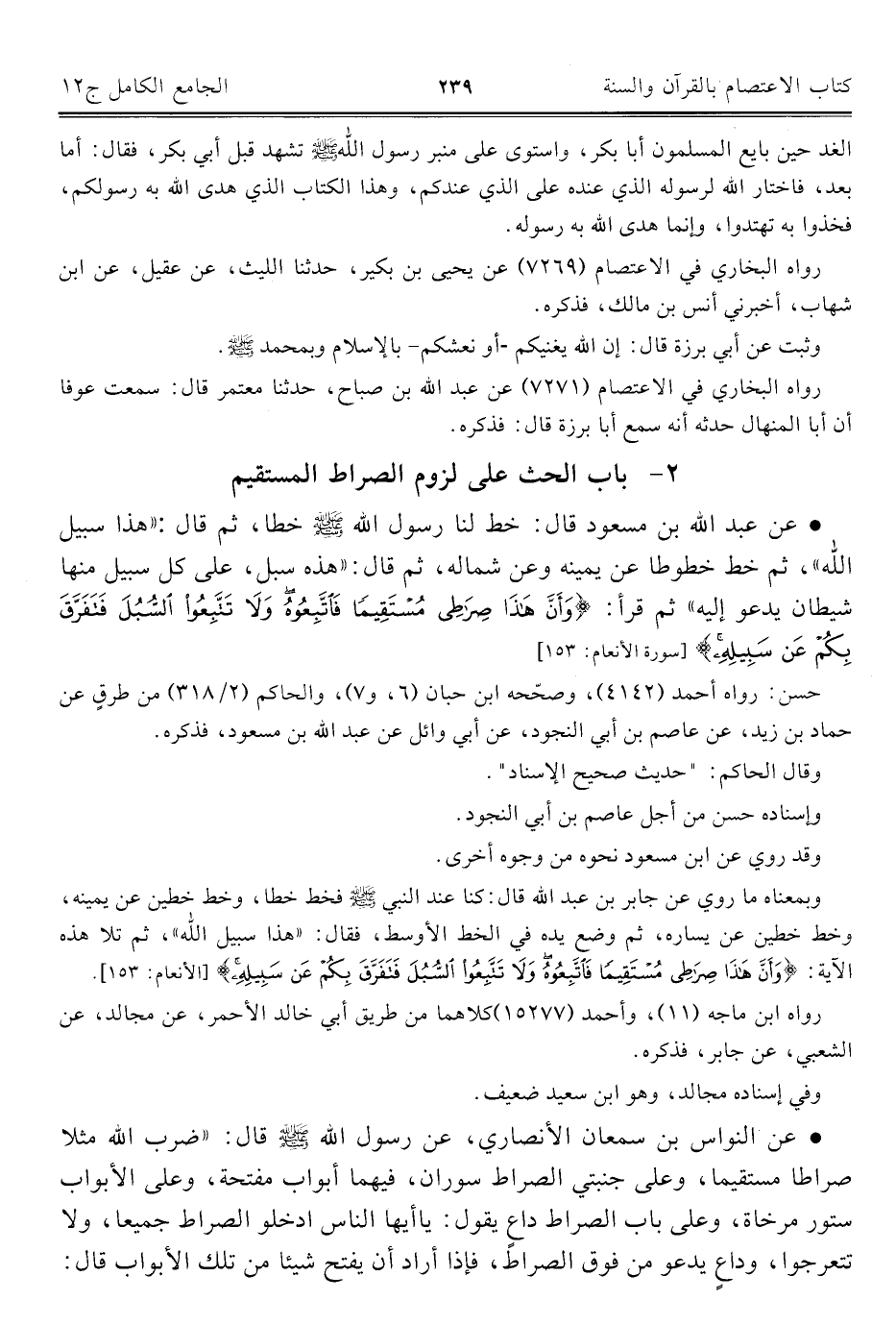 كتاب الجامع الكامل في الحديث الصحيح الشامل المرتب على أبواب الفقه (اسم الجزء: 12)