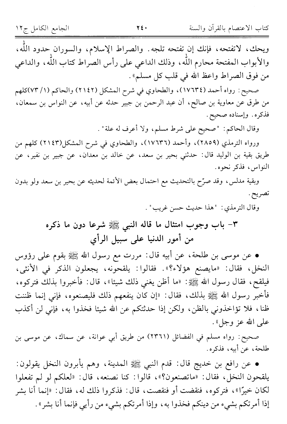 كتاب الجامع الكامل في الحديث الصحيح الشامل المرتب على أبواب الفقه (اسم الجزء: 12)