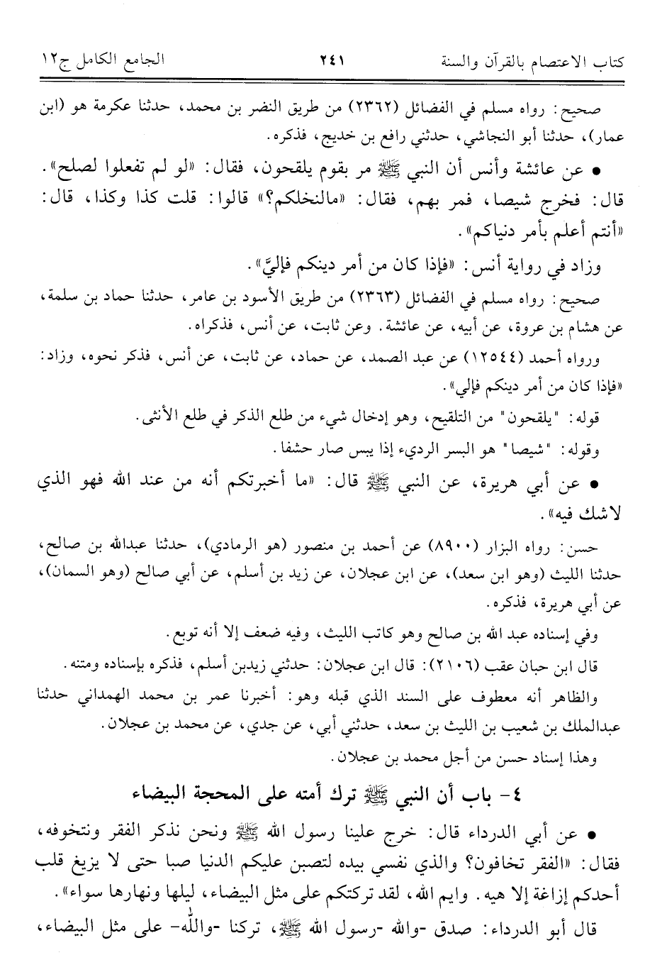 كتاب الجامع الكامل في الحديث الصحيح الشامل المرتب على أبواب الفقه (اسم الجزء: 12)