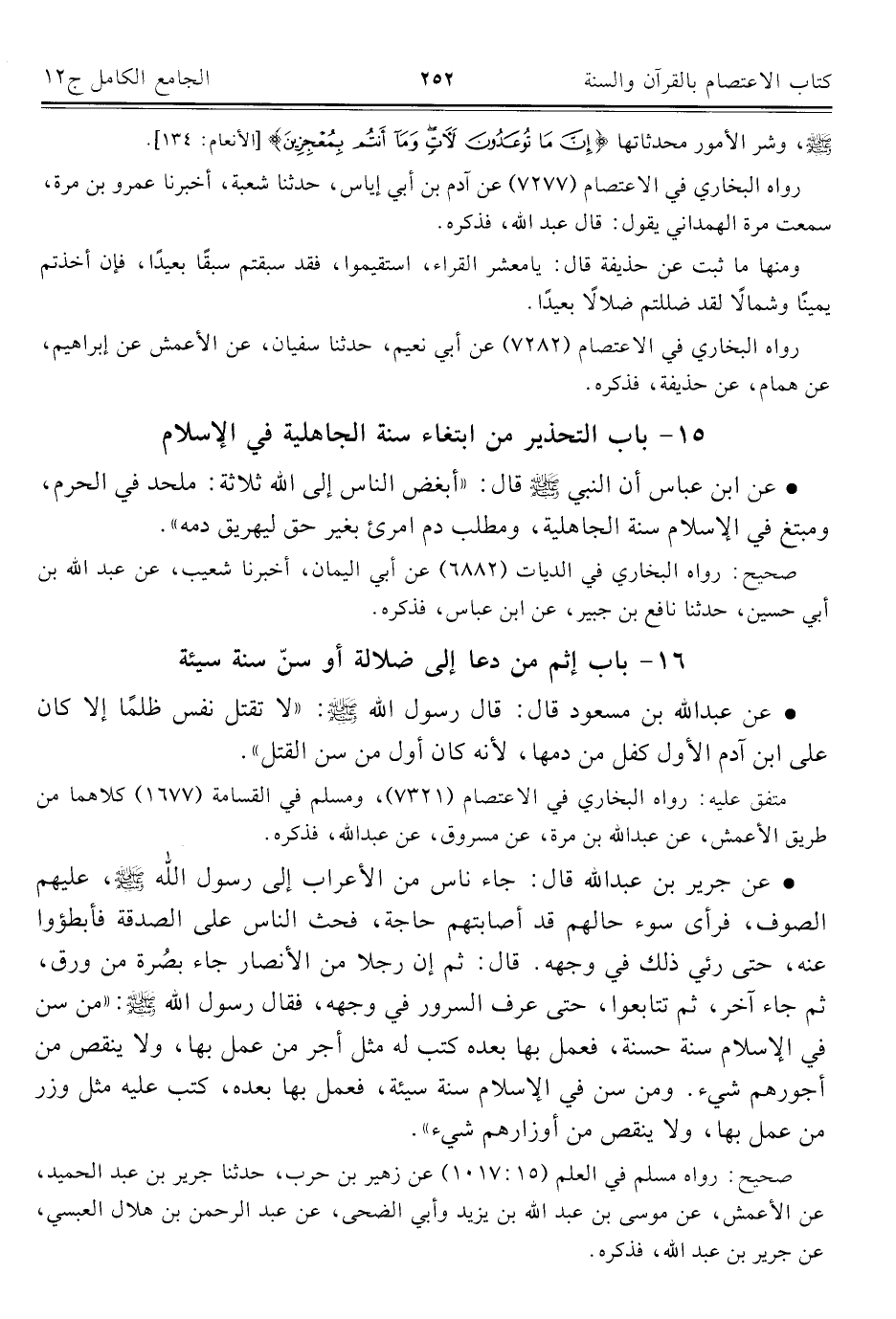 كتاب الجامع الكامل في الحديث الصحيح الشامل المرتب على أبواب الفقه (اسم الجزء: 12)