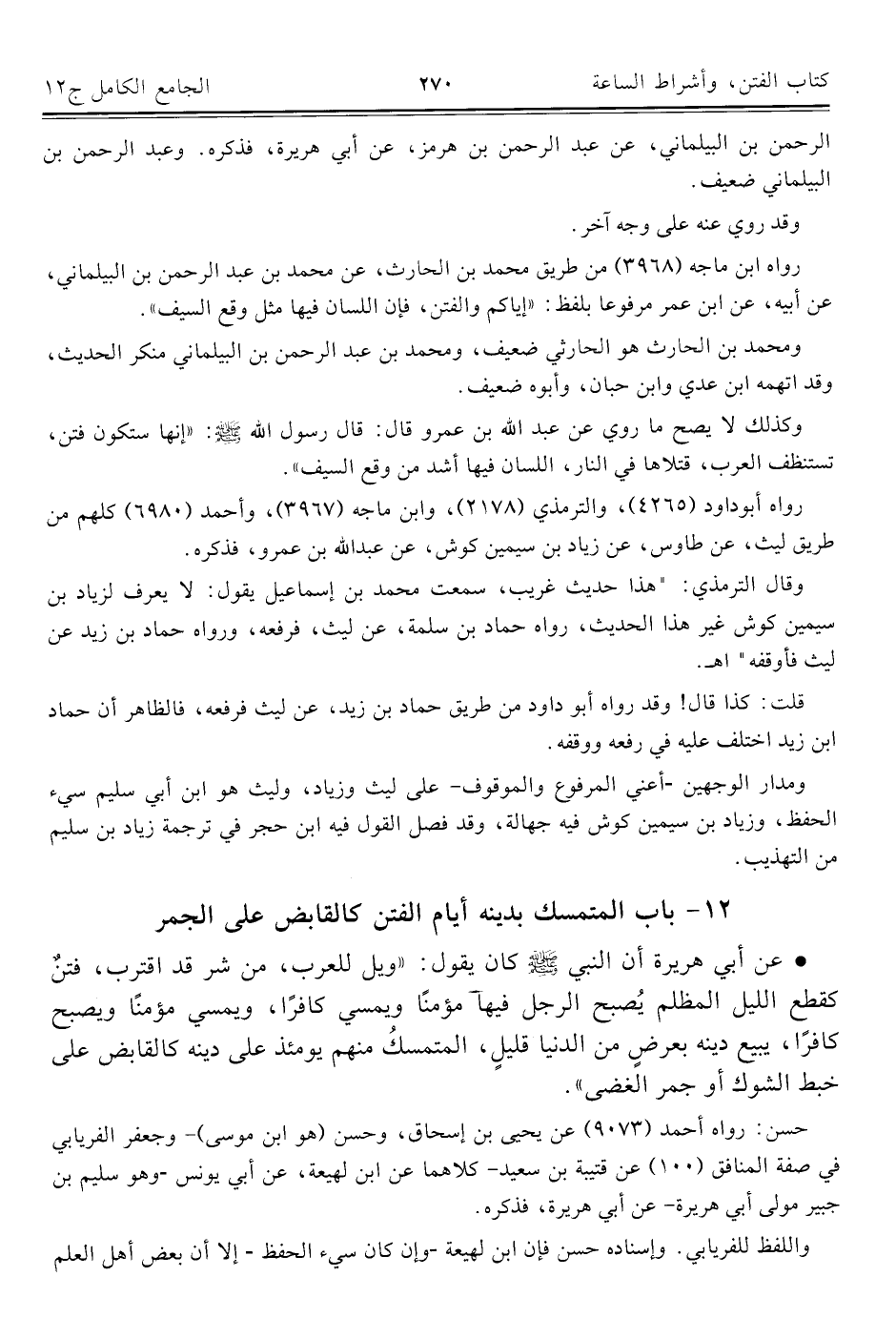 كتاب الجامع الكامل في الحديث الصحيح الشامل المرتب على أبواب الفقه (اسم الجزء: 12)