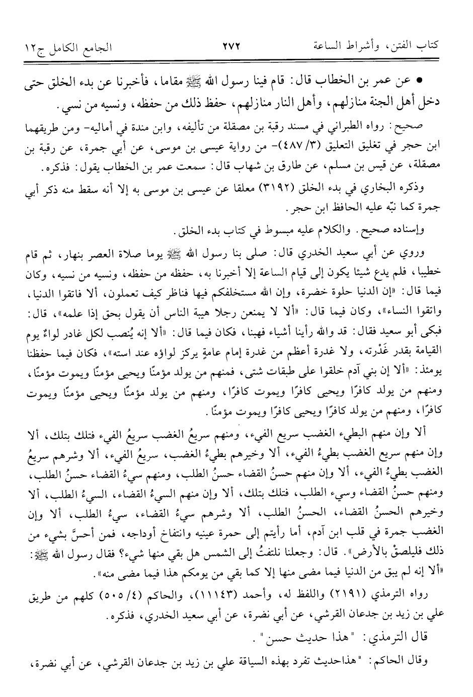 قال الترمذيّ: "هذا حديث حسن".