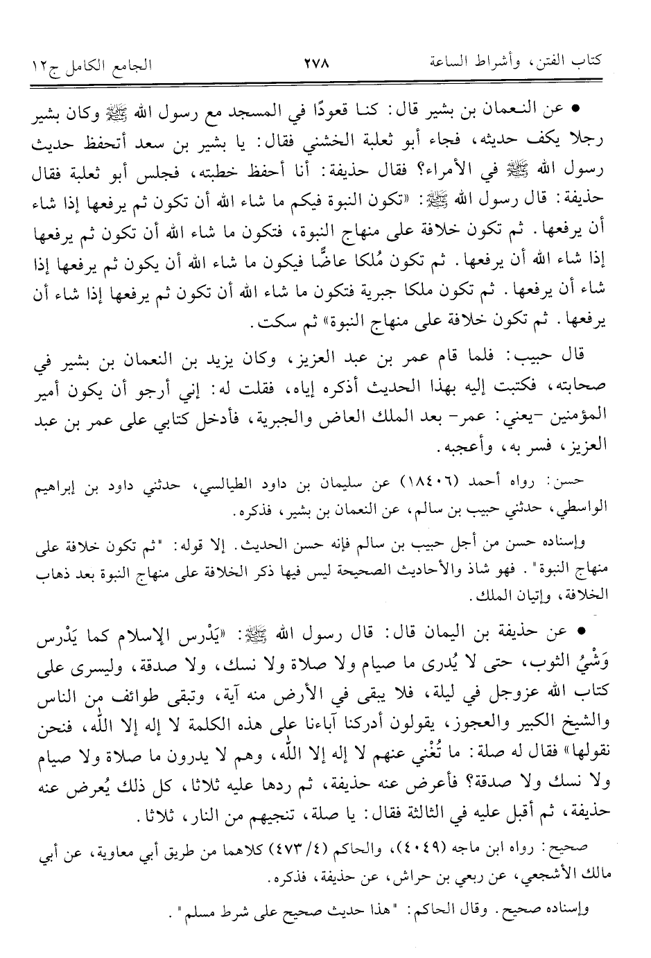 كتاب الجامع الكامل في الحديث الصحيح الشامل المرتب على أبواب الفقه (اسم الجزء: 12)