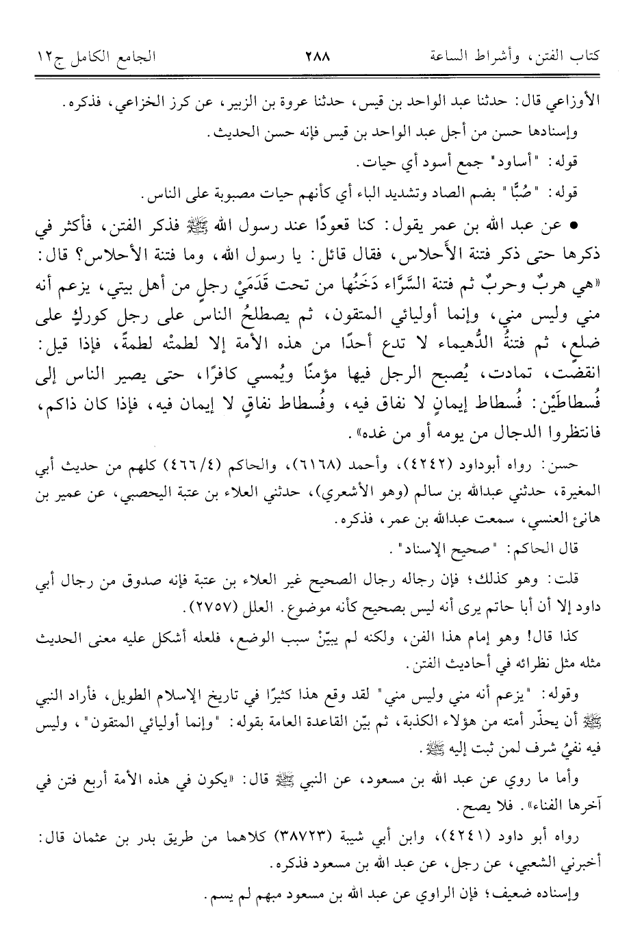 كتاب الجامع الكامل في الحديث الصحيح الشامل المرتب على أبواب الفقه (اسم الجزء: 12)