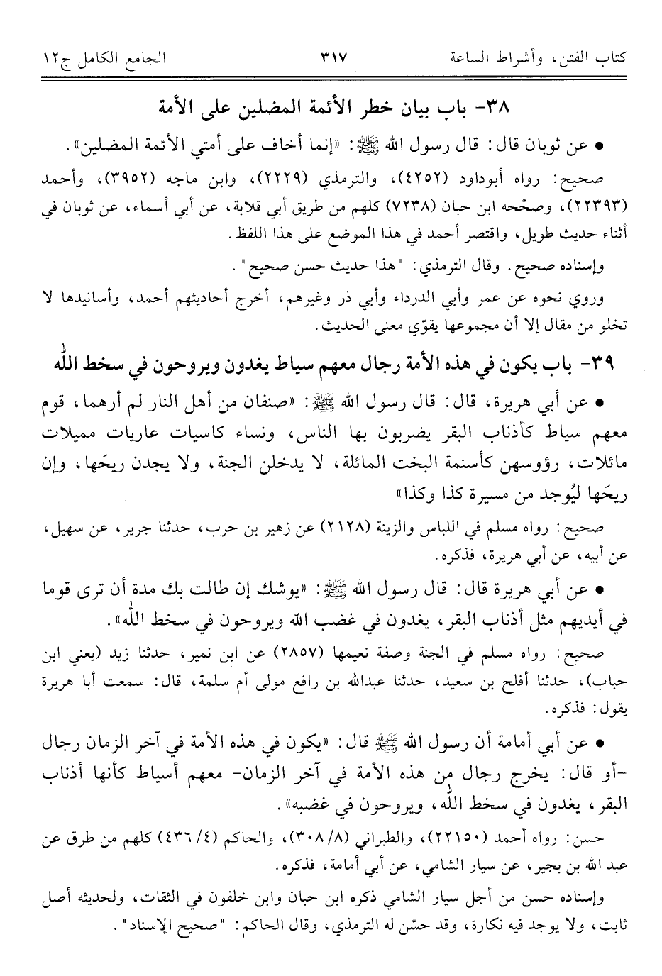 كتاب الجامع الكامل في الحديث الصحيح الشامل المرتب على أبواب الفقه (اسم الجزء: 12)