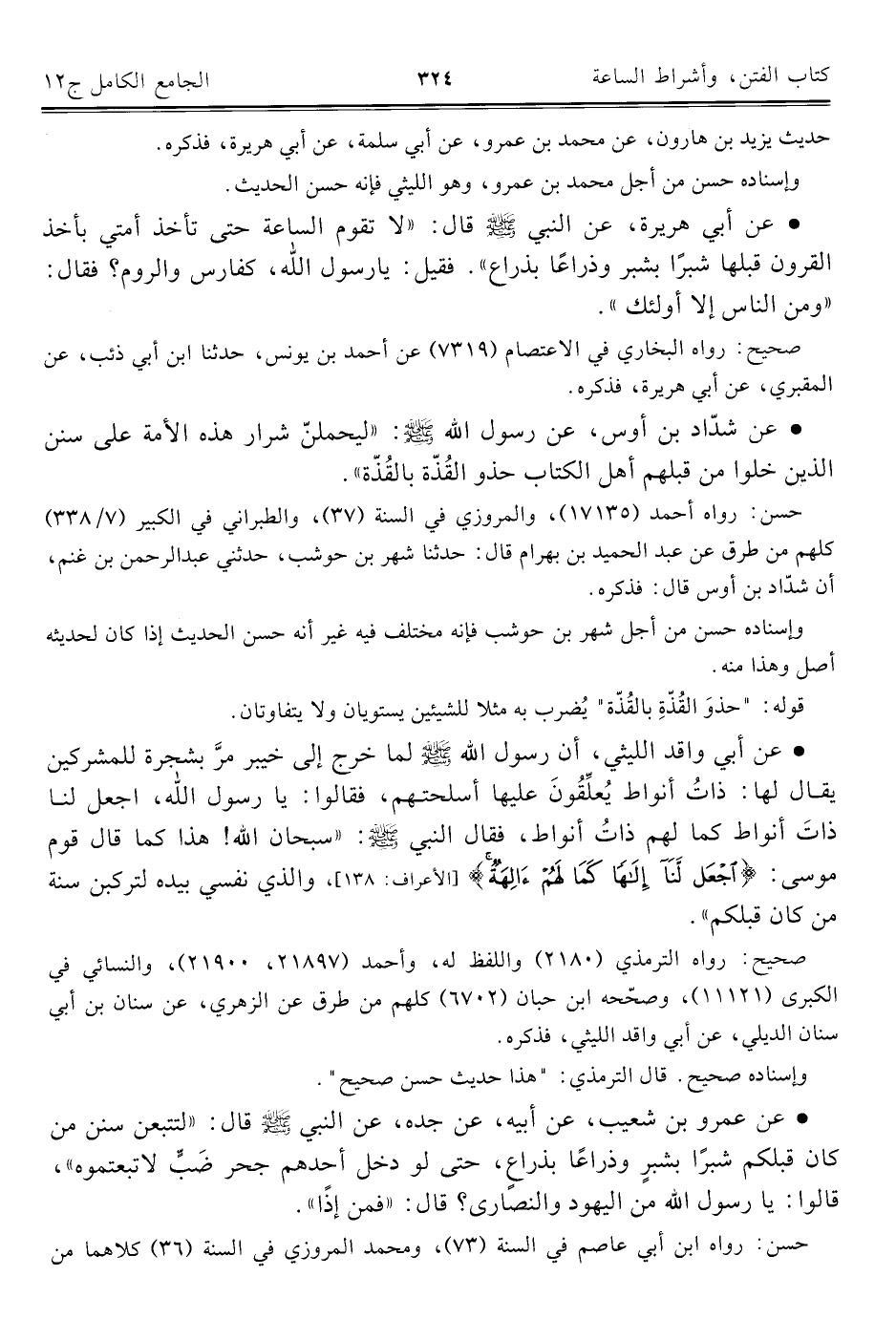 كتاب الجامع الكامل في الحديث الصحيح الشامل المرتب على أبواب الفقه (اسم الجزء: 12)