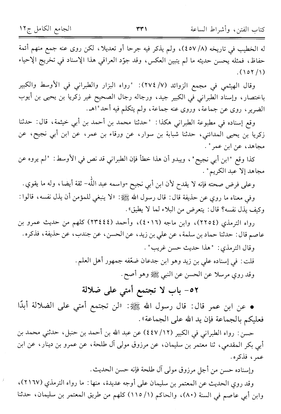 ٥٢ - باب لا تجتمع أمتي على ضلالة