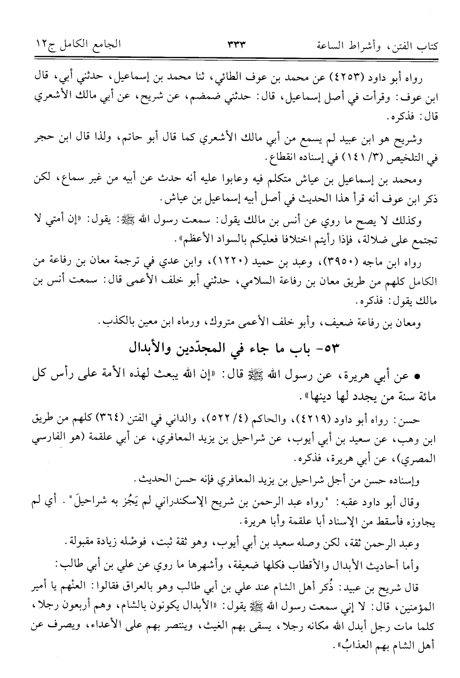٥٣ - باب ما جاء في المجدّدين والأبدال
