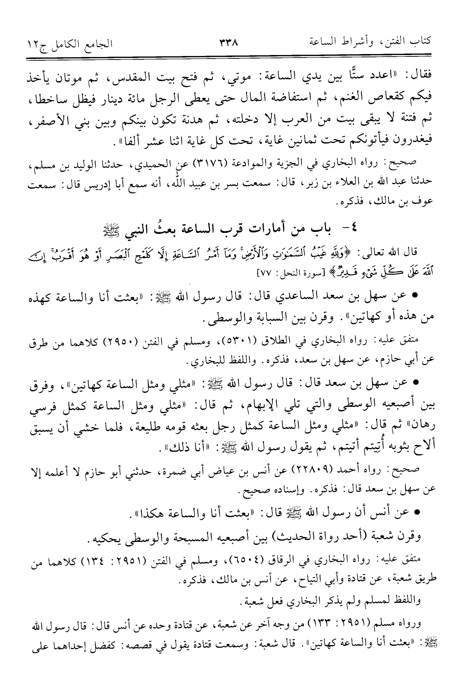 كتاب الجامع الكامل في الحديث الصحيح الشامل المرتب على أبواب الفقه (اسم الجزء: 12)