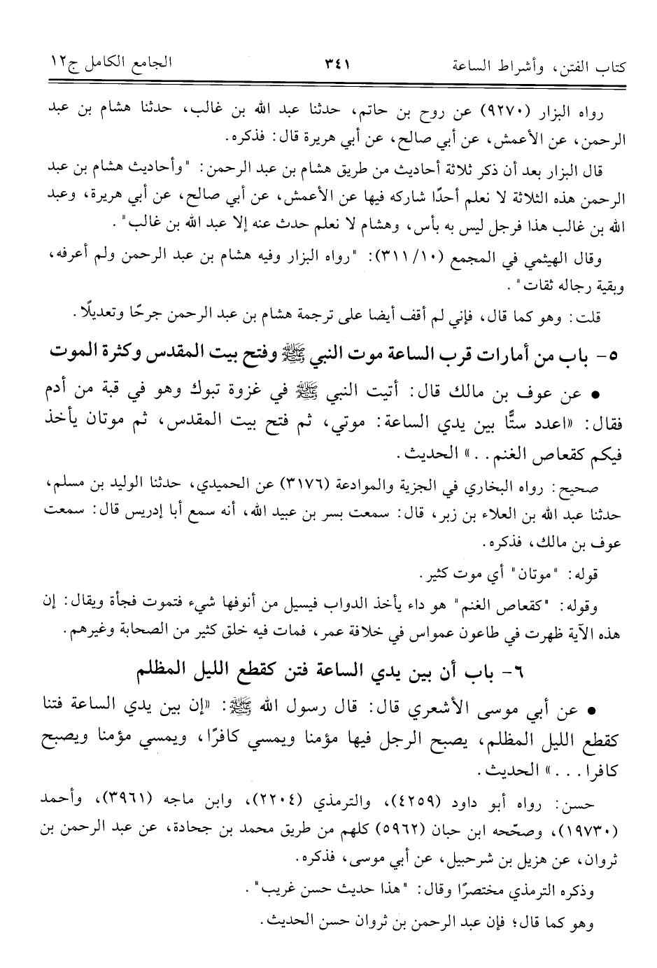كتاب الجامع الكامل في الحديث الصحيح الشامل المرتب على أبواب الفقه (اسم الجزء: 12)
